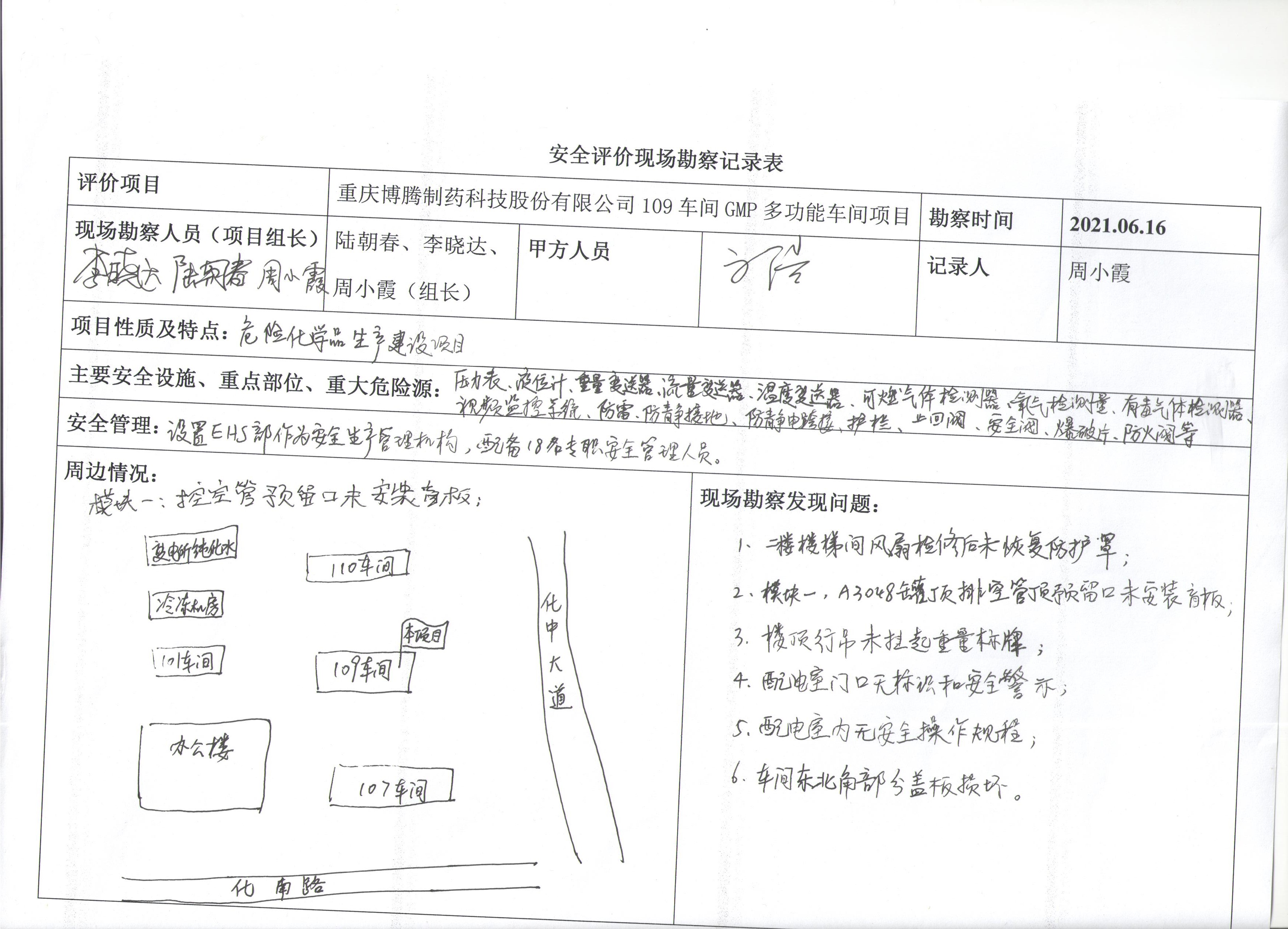 項(xiàng)目名稱 | 重慶博騰制藥科技股份有限公司109車間GMP多功能車間項(xiàng)目安全驗(yàn)收評(píng)價(jià) | 合同編號(hào) | DA(渝)PJ-003 | |||||